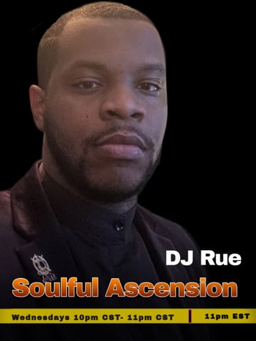 Introducing our newest DJ and host, bringing a fresh energy and a deep love for music that moves the spirit. Every Wednesday night, prepare to take a musical journey with “Soulful Ascension.” DJ Rue, who hails from Arkansas, brings with him that unmistakable Southern warmth and musical depth the region is known for—where rhythm, soul, and storytelling run deep.